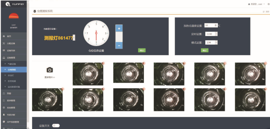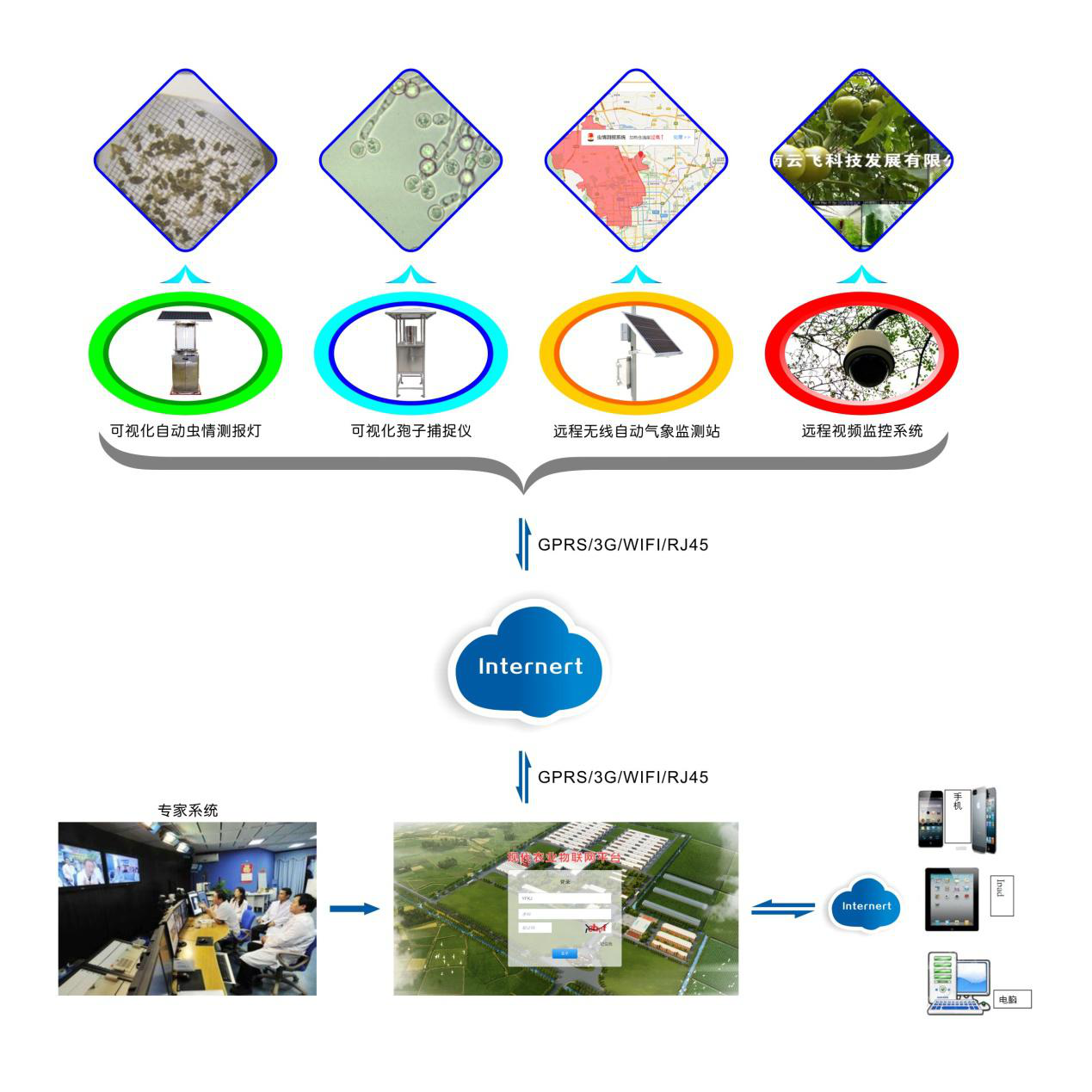 農作物病蟲害實時監控物聯網設備由遠程蟲情分析測報儀、無線自動氣象監測站、苗情災情監控攝像頭、預警預報系統、專家咨詢系統、用戶管理平臺等組成。用戶可以通過移動端和PC端隨時隨地登陸自己專屬的網絡客戶端,訪問田間的實時數據并進行系統管理,對每個監測點的環境、氣象、病蟲狀況、作物生長情況等進行實時監測。結合系統預警模型,對作物實時遠程監測與診斷,并獲得智能化、自動化的解決方案,實現作物生長動態監測和人工遠程管理,保證農作物在適宜的環境條件下生長,提高農業生產力,增加農民收入。